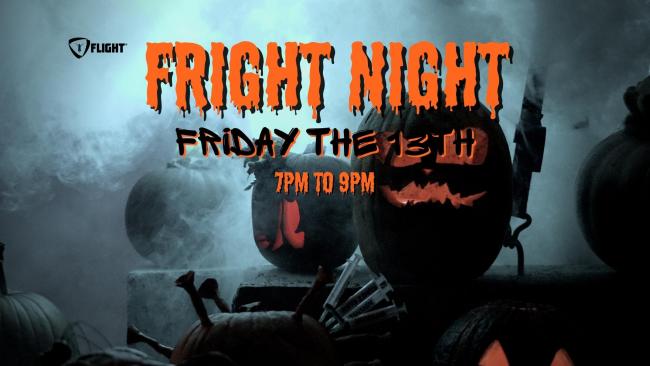 Enter if you dare! Flight will be hosting Fright Night: Friday, the 13th from 7pm-9pm. A night of haunting attractions and spine-tingling activities that will test your courage and send shivers down your spine. Wear your costume and glow under our blacklight equipped park, enhanced with lasers, lights and Halloween music. This event is open to ALL ages!